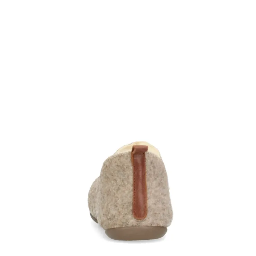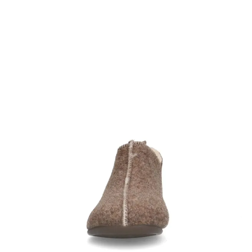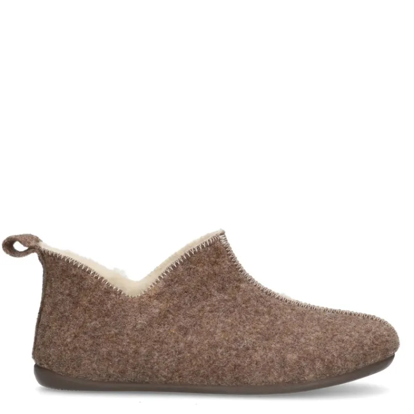 Beige pantoffels van Manfield met imitatie wol en hebben een cut-out bij de enkels. De pantoffels hebben een rubberen zool. Goed om te weten: de leerdetails van de pantoffels kunnen per artikel verschillen.