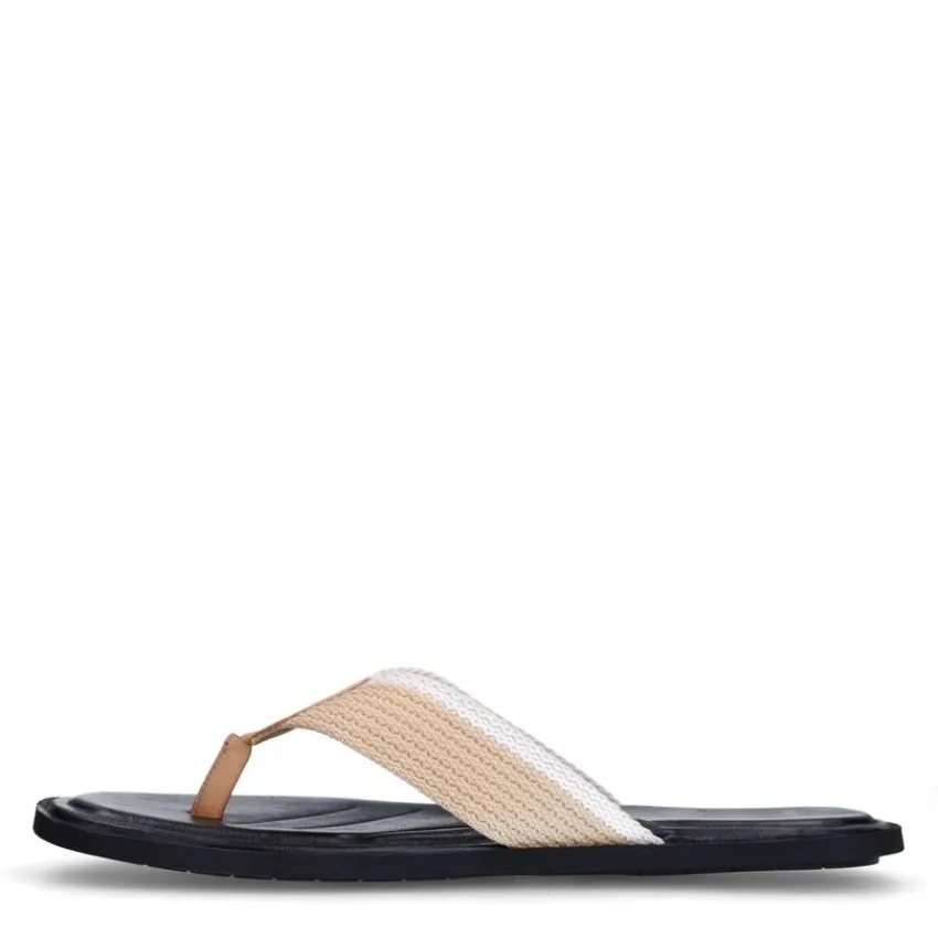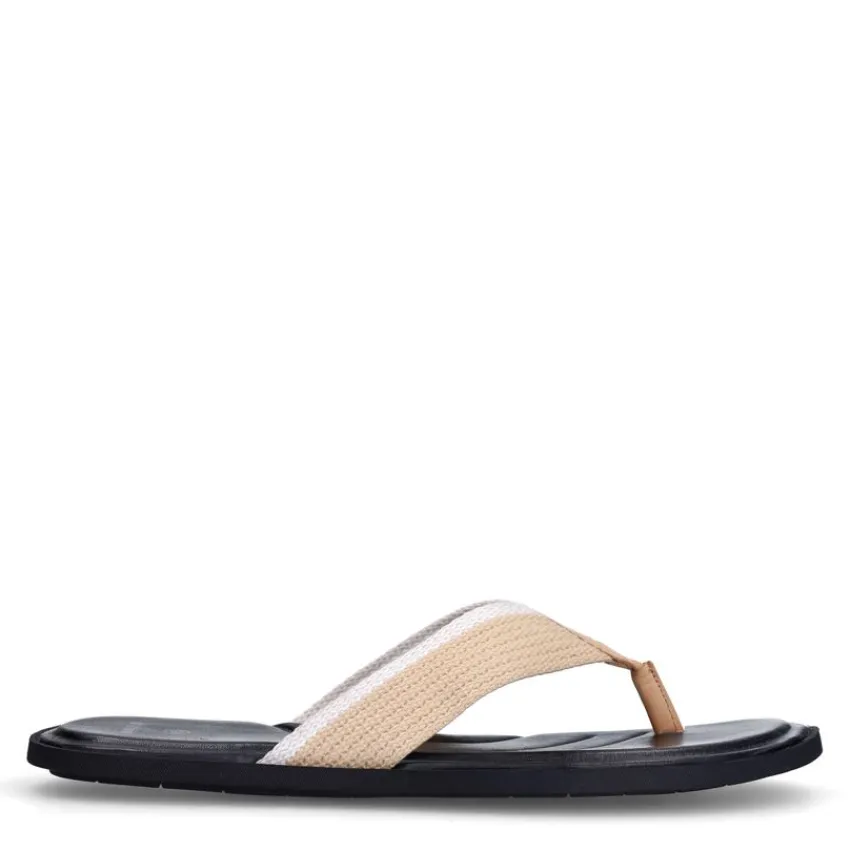Beige canvas slippers van Manfield met witte details en zool van 1 cm.