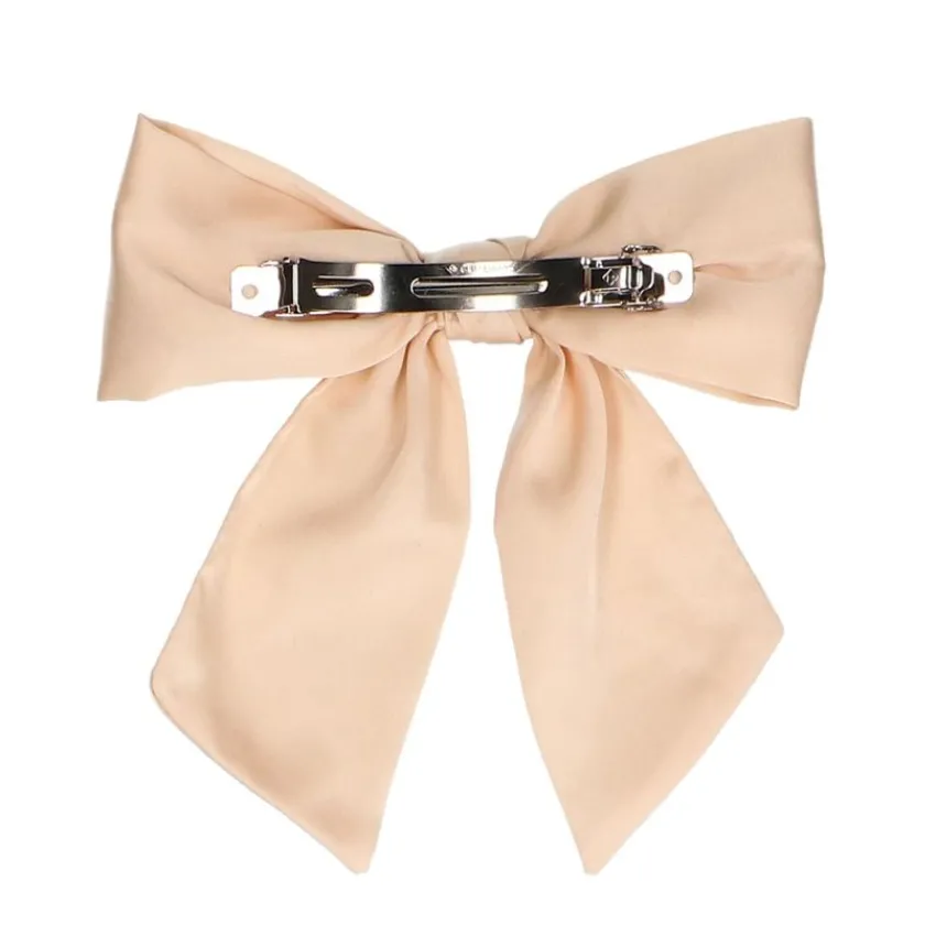 Beige haarclip met strik van Manfield. De clip is 9 cm breed en de strik is 17 cm breed.