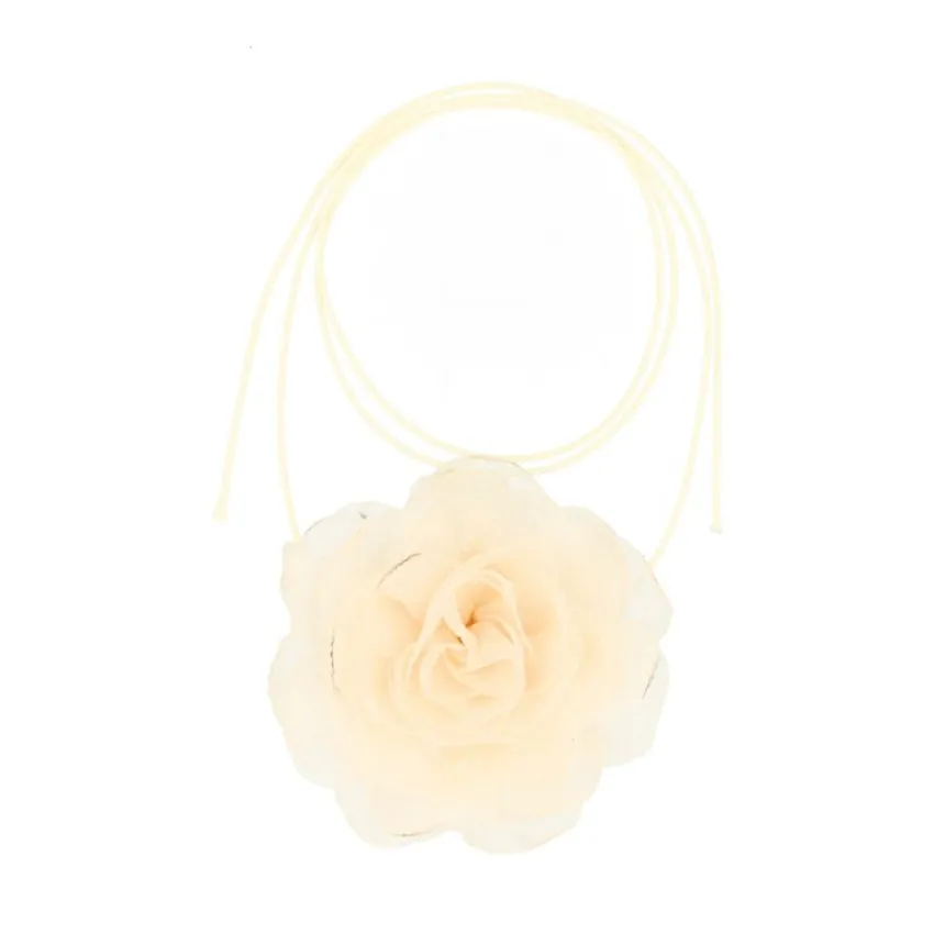 Deze koordketting van Manfield heeft een beige koord en een grote beige bloem.