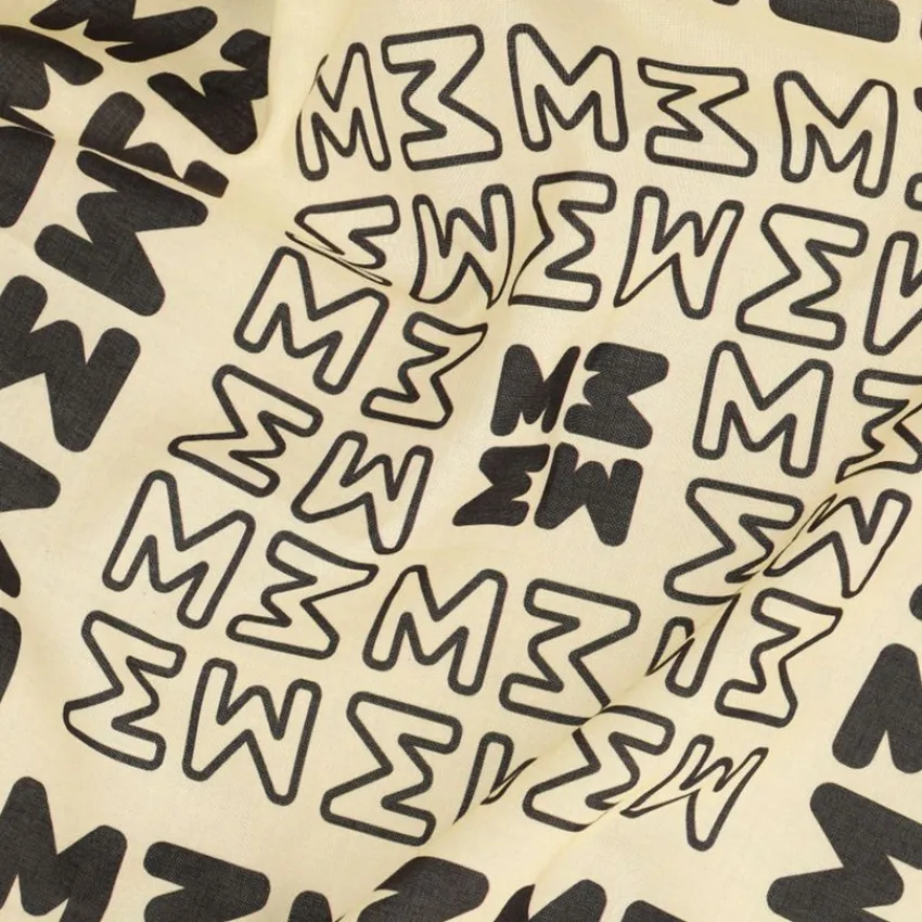 Beige sjaaltje met zwarte M details van Manfield. Het sjaaltje heeft een lengte en breedte van 71 cm.