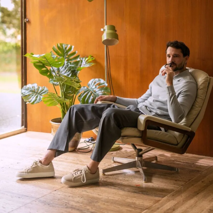 Beige suède sneakers van Manfield met vetersluiting en plateauzool van 4 cm. De binnenzool is uitneembaar en we adviser…