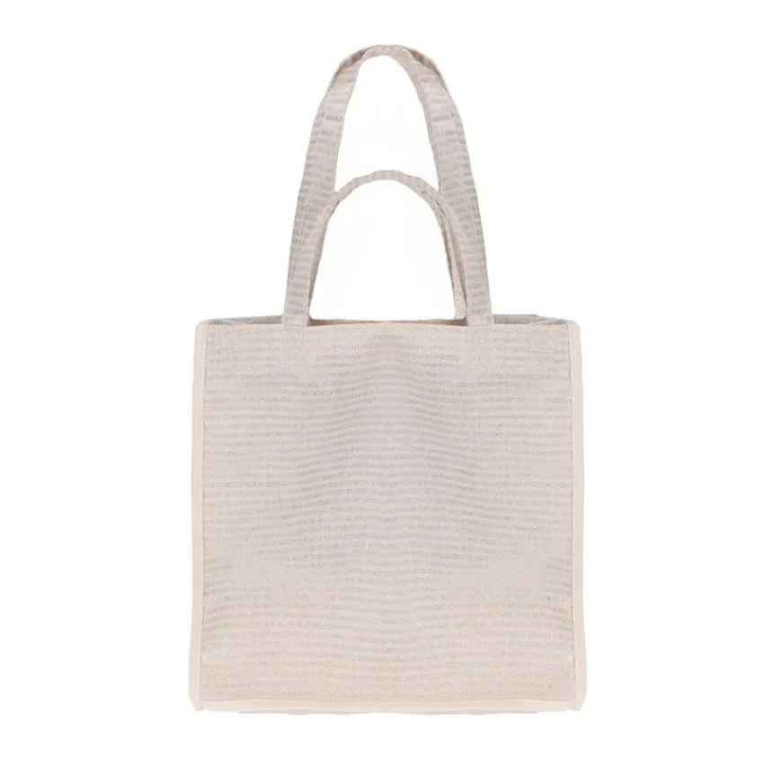 Beige & zilver gestreepte shopper van Manfield met dubbele handvaten. De afmeting van de shopper is 39x41x30 cm, (BxHxD).