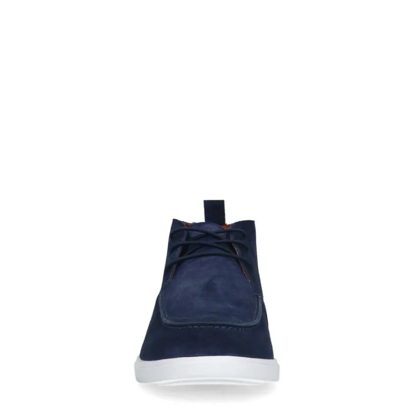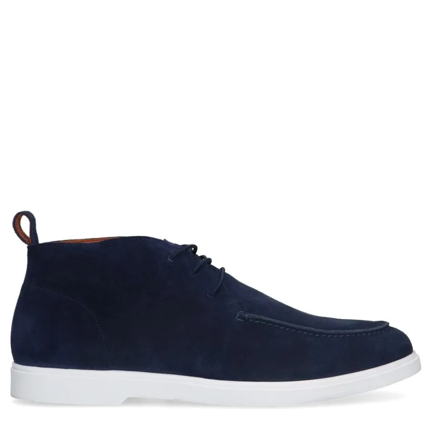 Blauwe suède veterboots van het merk Manfield. De buitenkant van deze schoenen is gemaakt van suède en de binnenkant van leer. Maak gebruik van de juiste onderhoudsproducten zodat je extra lang plezier hebt van de sneakers!