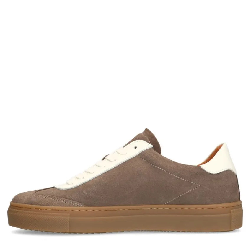 Bruine suède sneakers van Manfield met suède en witte details. De sneakers hebben een bruine rubberen zool. We adviseren als verzorging en bescherming de suède/nubuck spray in transparant.