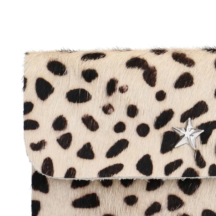 Cheetah portemonnee van Manfield met drukknoop en ritssluiting. De afmeting van de portemonnee is 11 x 9 cm (BxH).