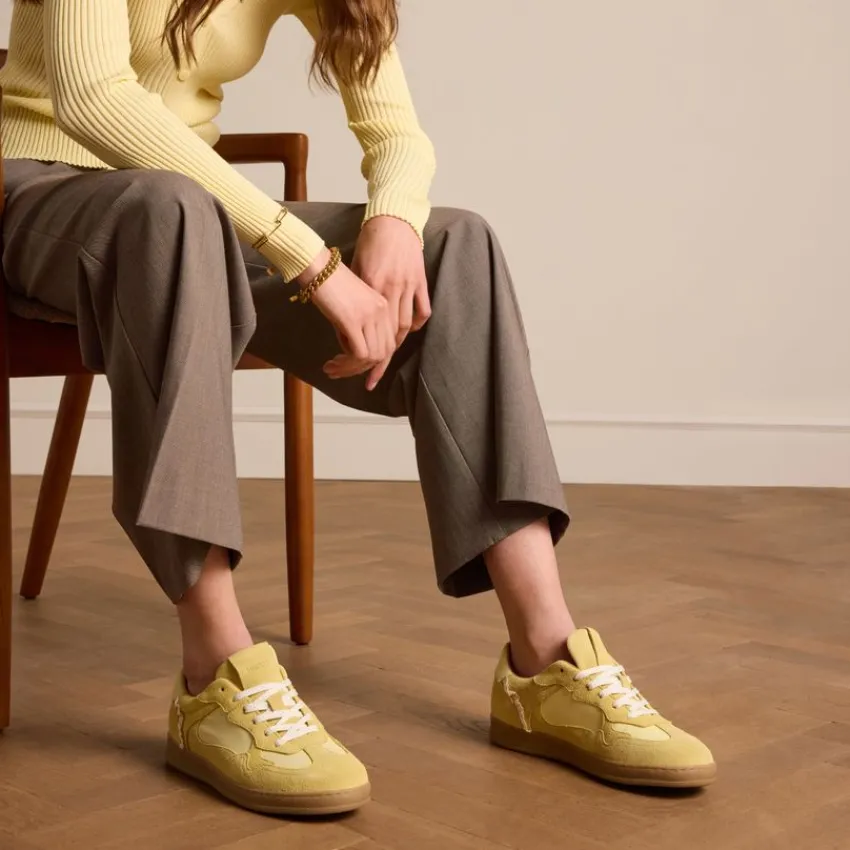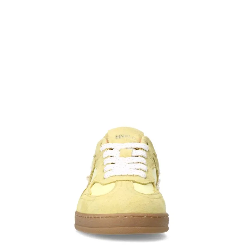 Gele sneakers met kant van Manfield met bruine zool van 3 cm en witte veters. We adviseren als verzorging en bescherming de suède/nubuck spray in transparant. LET OP- Dit artikel is een oline only item, toch willen passen of deze goed zit? In de winkel hebben wij vergelijkbare modellen.