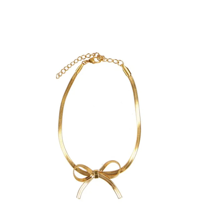 Gouden armband met strik detail van Manfield. De armband is gemaakt van stainless steel en heeft een totale lengte van 16 cm.