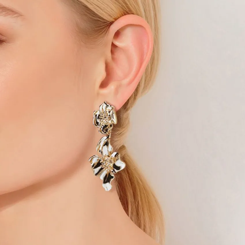 Gouden bloemen oorbellen van Manfield met een lengte van 6 cm. Wegens de algemene hygiënevoorschriften kan dit artikel niet geretourneerd worden.