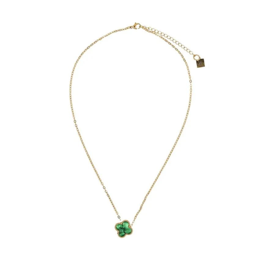 Goudkleurige ketting met groen klavertje van Manfield, gemaakt van stainless steel. De ketting heeft een klavertje met een groene invulling en een goudkleurig randje.