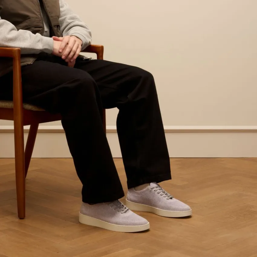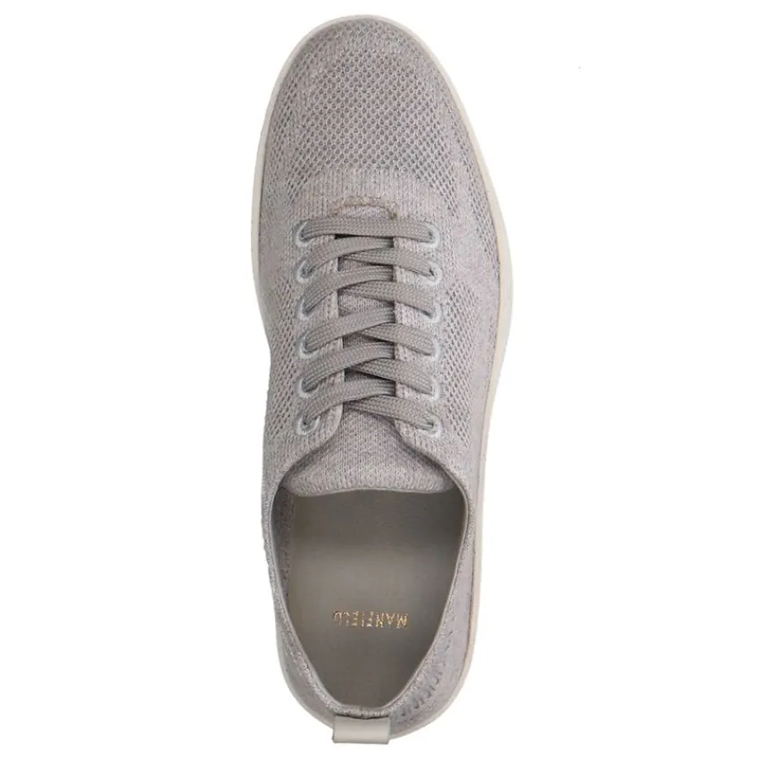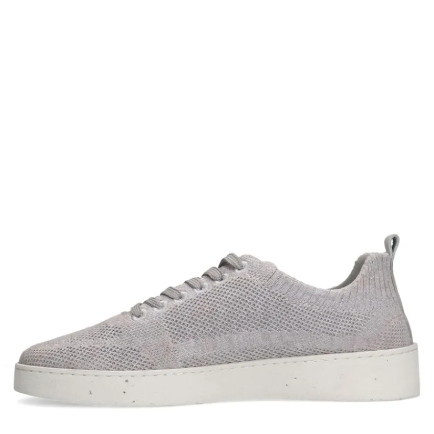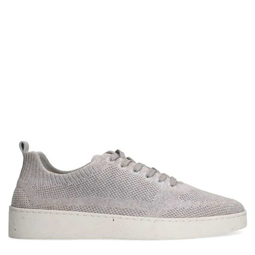 Grijze knit fabric sneakers van Manfield met créme zool van 3 cm. We adviseren als verzorging en bescherming de Natural Trendspray.