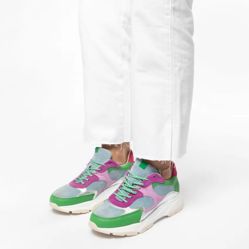 Groene leren sneakers van Manfield met plateauzool van 2,5 cm. We adviseren als verzorging en bescherming de Collonil Carbon Pro.