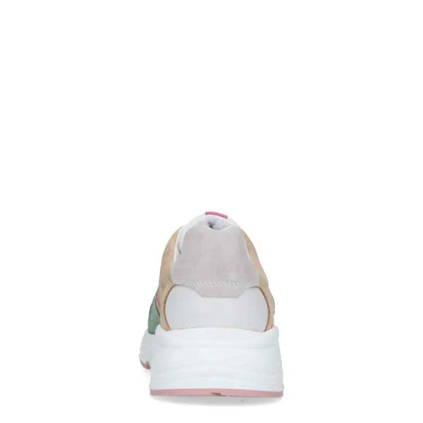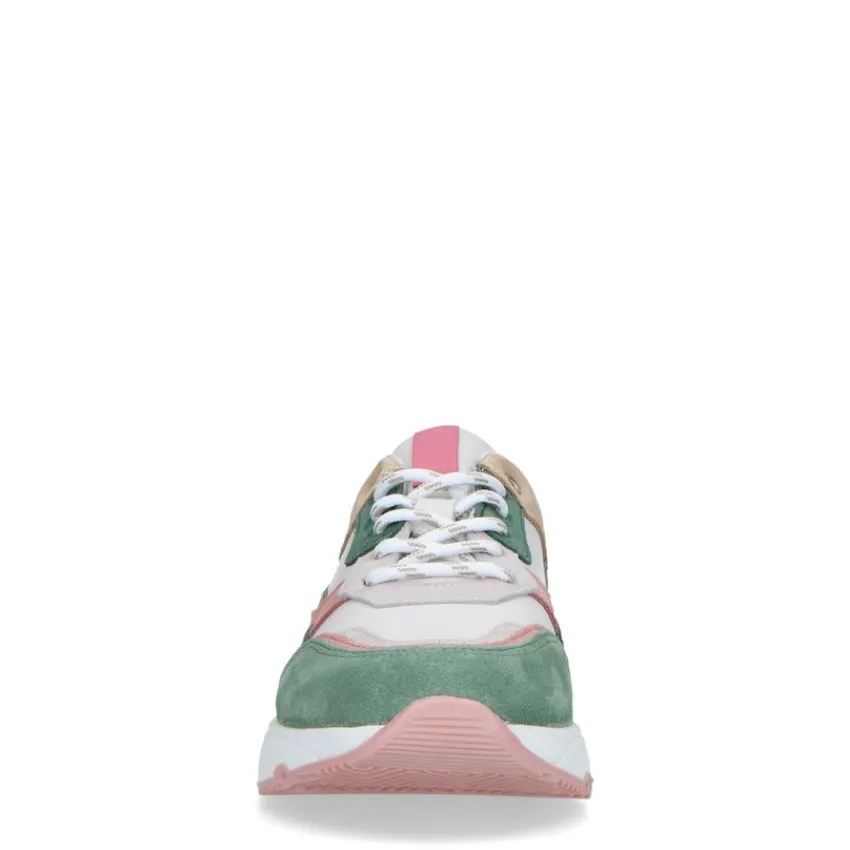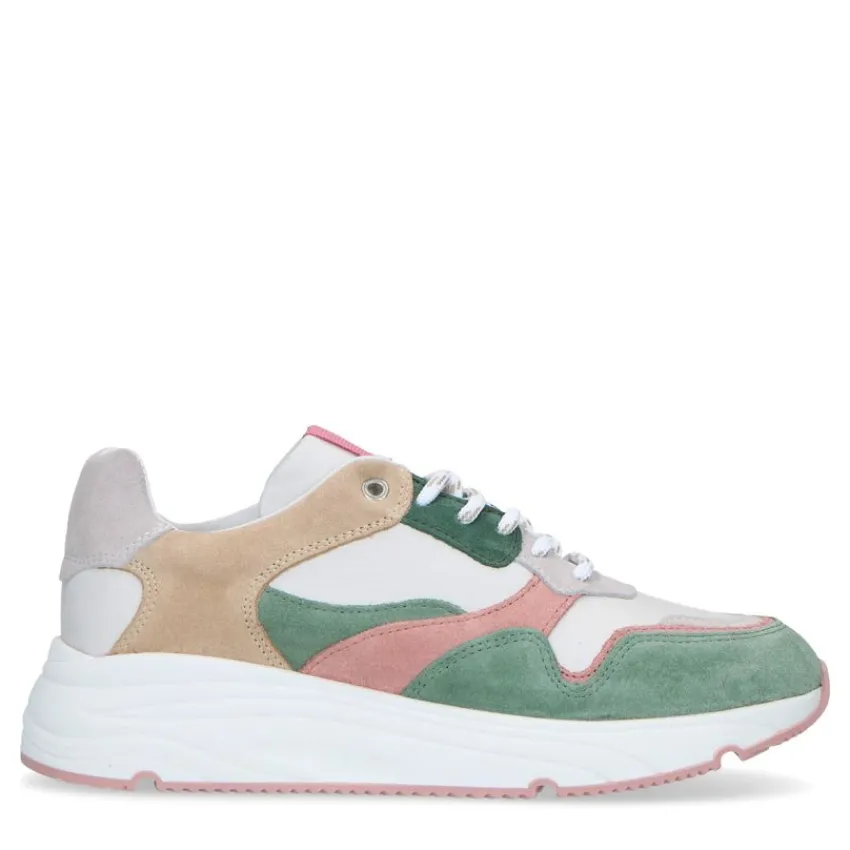 Groene suède sneakers van Manfield met witte zool van 4 cm. We adviseren als verzorging en bescherming de suède/nubuck spray in transparant.