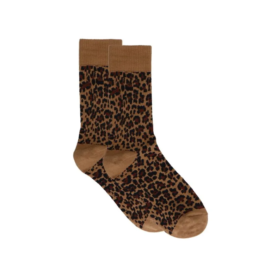 Leopard socks van Manfield. De sokken zijn gemaakt van 65% katoen, 18% polyester, 15% nylon & 2% spandex.