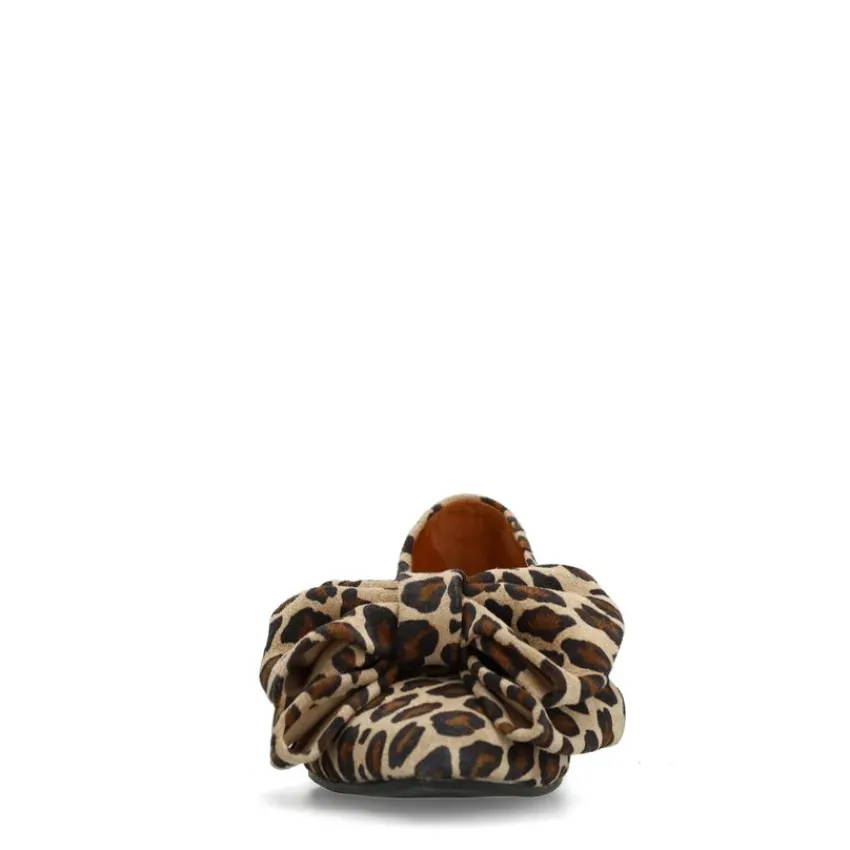 Leopard suède loafers van Manfield met een strik op de voorvoet en platte hak van 1 cm. We adviseren als verzorging en bescherming de Suède/nubuck spray in transparant.