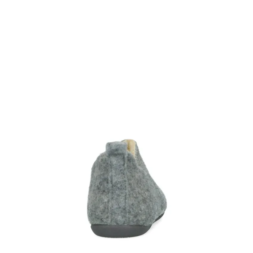 Lichtgrijze pantoffels van het merk Manfield. De pantoffels zijn erg zacht van binnen, doordat de gehele binnenkant is gemaakt van imitatie wol. Deze pantoffels bedekken de gehele voet, zodat de voeten extra warm blijven. Een leuk detail is de cut-out bij de enkels en de bruine streep op de achterzijde van de pantoffels. Ideaal om binnenshuis te dragen, maar door de rubberen zool kunnen deze huisschoenen ook prima rondom het huis gedragen worden. Goed om te weten: de leerdetails van de pantoffels kunnen per artikel verschillen.