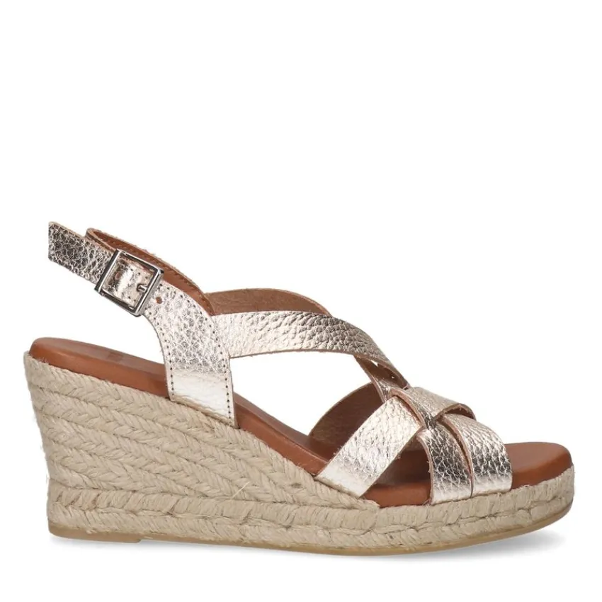 Metallic gouden leren sleehakken van Manfield met hakhoogte van 8 cm. en gespsluiting. We adviseren als verzorging en bescherming de Collonil Carbon Pro.