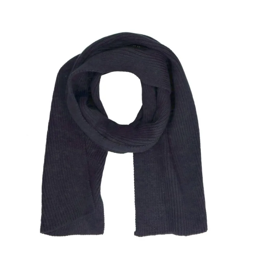 Navy sjaal van Manfield met een breedte van 28 cm en lengte van 182 cm.