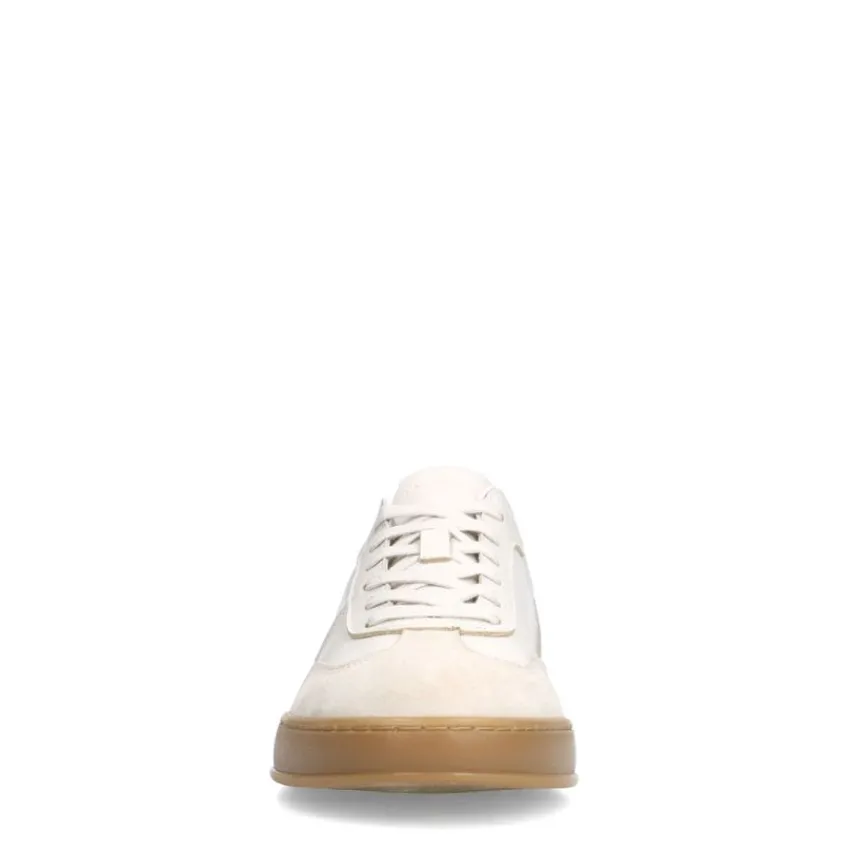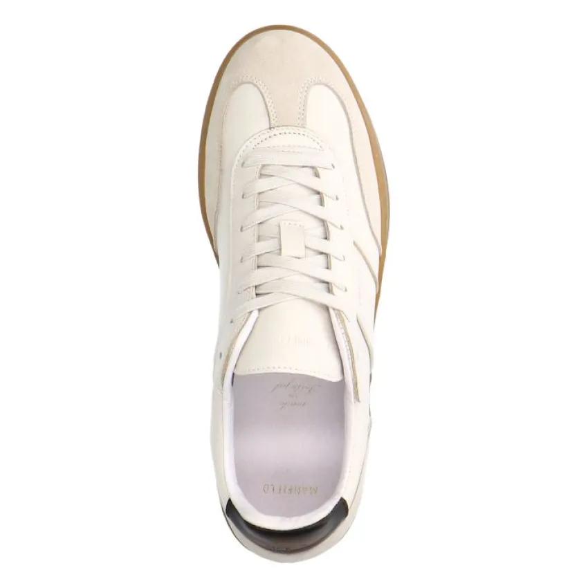 Off white leren sneakers met suède details van Manfield met beige zool. We adviseren als verzorging en bescherming de Collonil Carbon Pro.