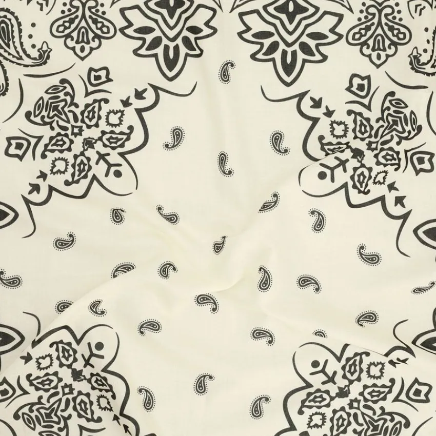 Off white sjaaltje met zwarte unieke details van Manfield. Het sjaaltje heeft een lengte en breedte van 71 cm.