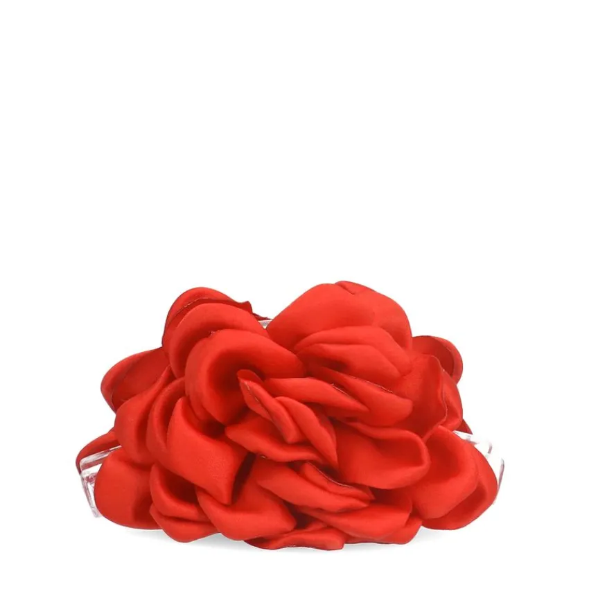 Rode roos haarklem van Manfield. De klem heeft een totale lengte van 10 cm en de bloem is 11 cm breed. Kleur rood Mater…