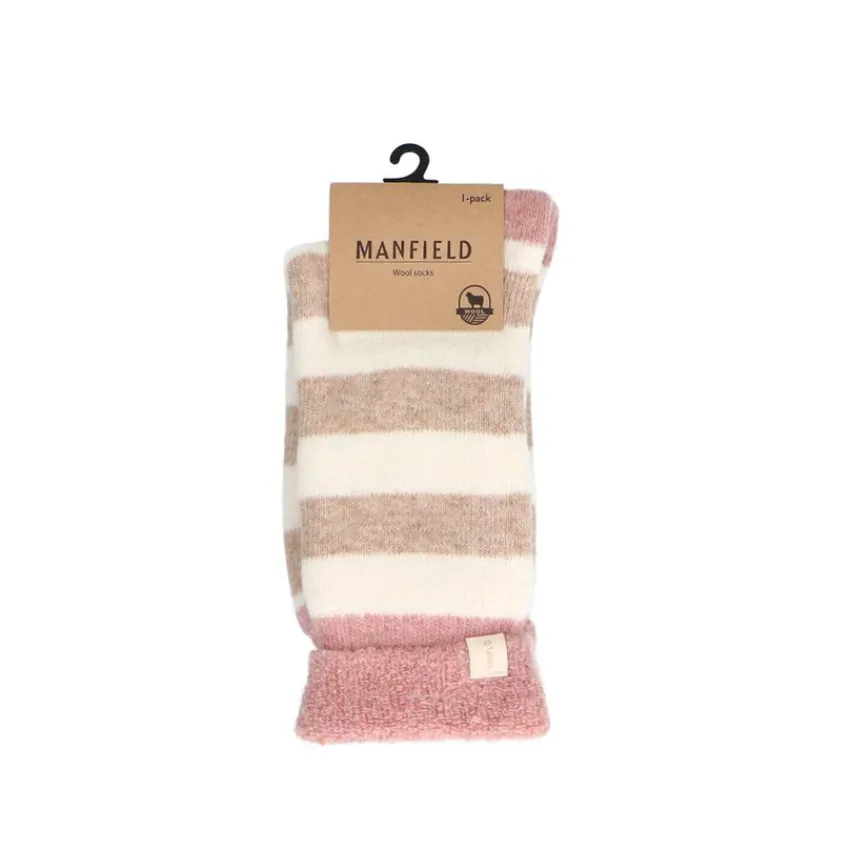 Roze gestreepte cosy sokken van Manfield en zijn gemaakt van 65% wol.
