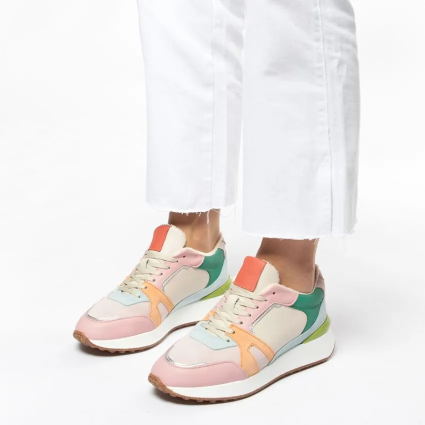 Roze leren sneakers van Manfield met witte zool. We adviseren als verzorging en bescherming de Collonil Carbon Pro.