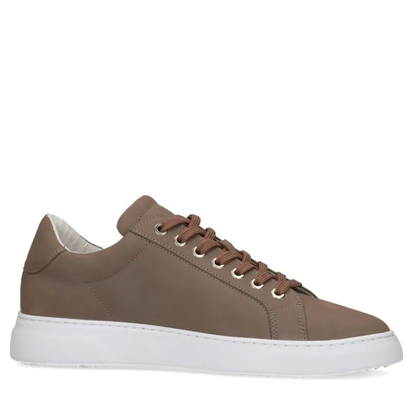 Deze taupe sneakers van nubuck leer van Manfield zijn onmisbaar voor alle mannen met gevoel voor styling. De zool heeft een dikte van 2 cm en een hakhoogte van 4 cm. Onderhoud de sneakers met suède/nubuck spray transparant voor langdurig draagplezier.