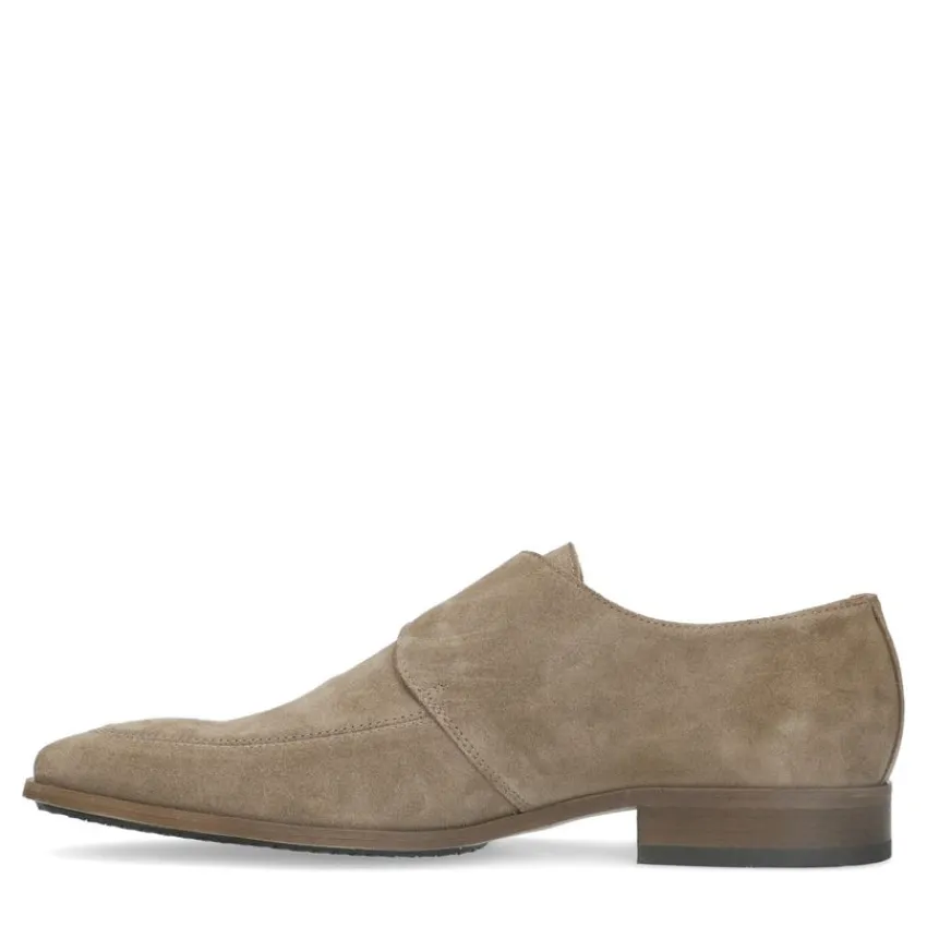 Taupe suède gespschoenen van het merk Manfield. De schoenen hebben aan de buitenzijde een gesp. De buitenzijde van de schoen is gemaakt van suède en de binnenzijde van leer. Combineer de gespschoenen onder een net pak voor een zakelijke look. Maak gebruik van een onderhoudsproduct zoals de Collonil Carbon Pro om langdurig plezier te hebben van je nieuwe schoenen.