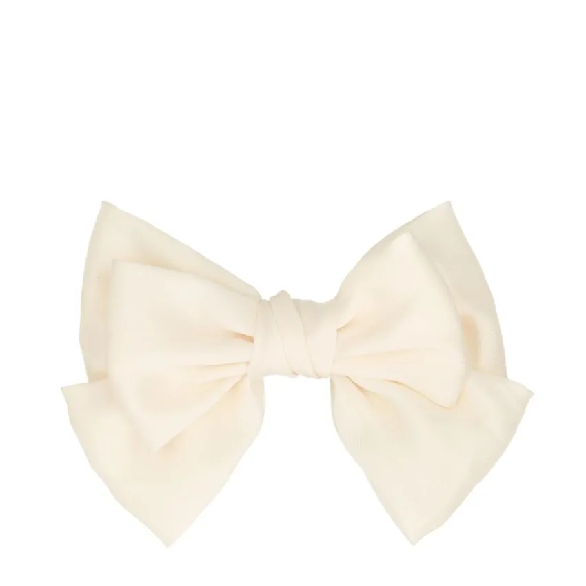 Witte haarclip met strik van Manfield. De haarklip is 9 cm breed en de strik is 17 cm breed. Kleur beige Materiaal bi…
