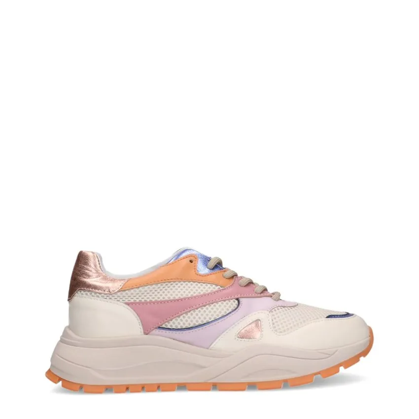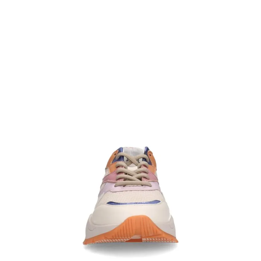Witte leren sneakers met gekleurde details van Manfield met een zool van 4 cm. We adviseren als verzorging en bescherming de Collonil Carbon Pro.