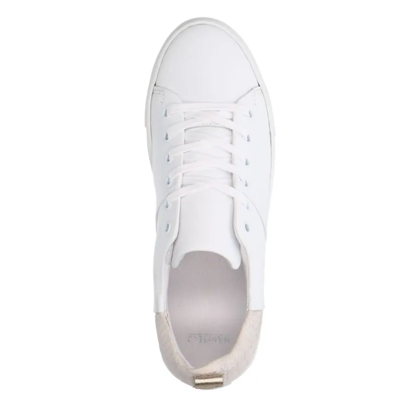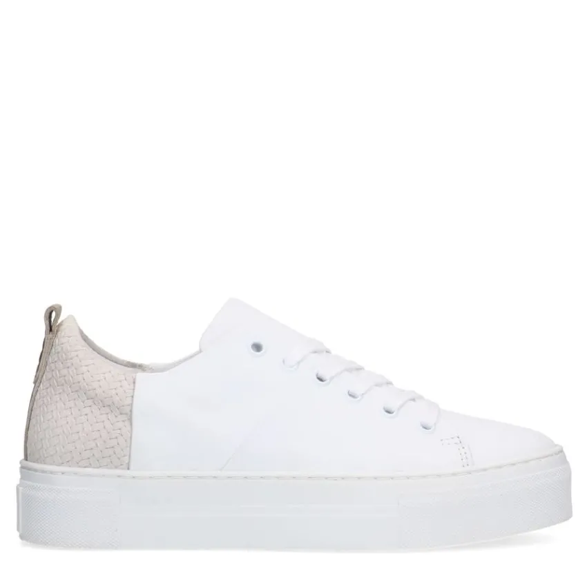 Witte leren sneakers met grijze achterkant van Manfield. We adviseren als verzorging en bescherming de Collonil Carbon Pro.