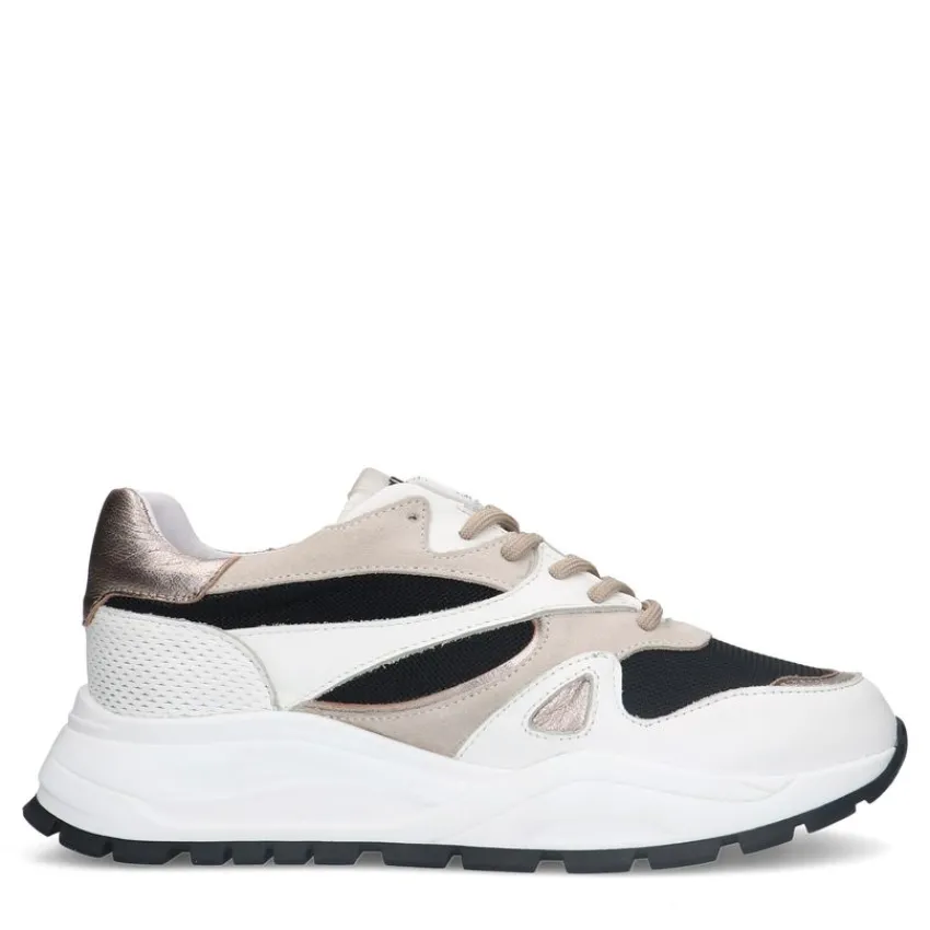 Witte leren sneakers met mesh details van Manfield. De schoenen hebben een witte zool van 4 cm. We adviseren als verzorging en bescherming de Collonil Carbon Pro of de Natural Trendspray