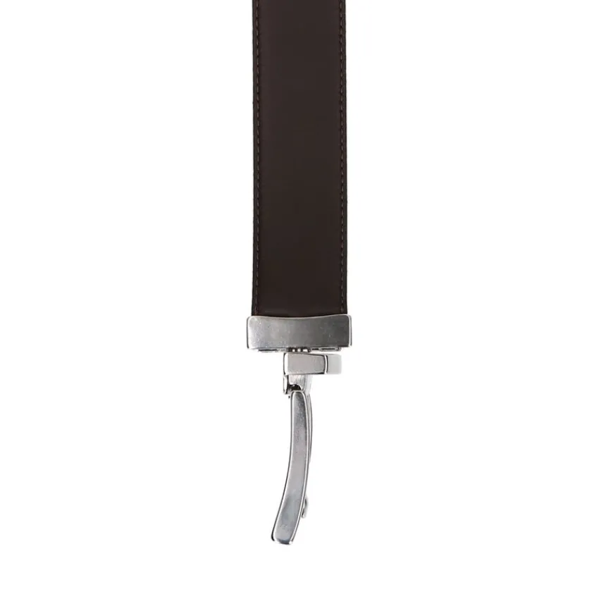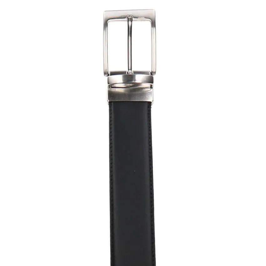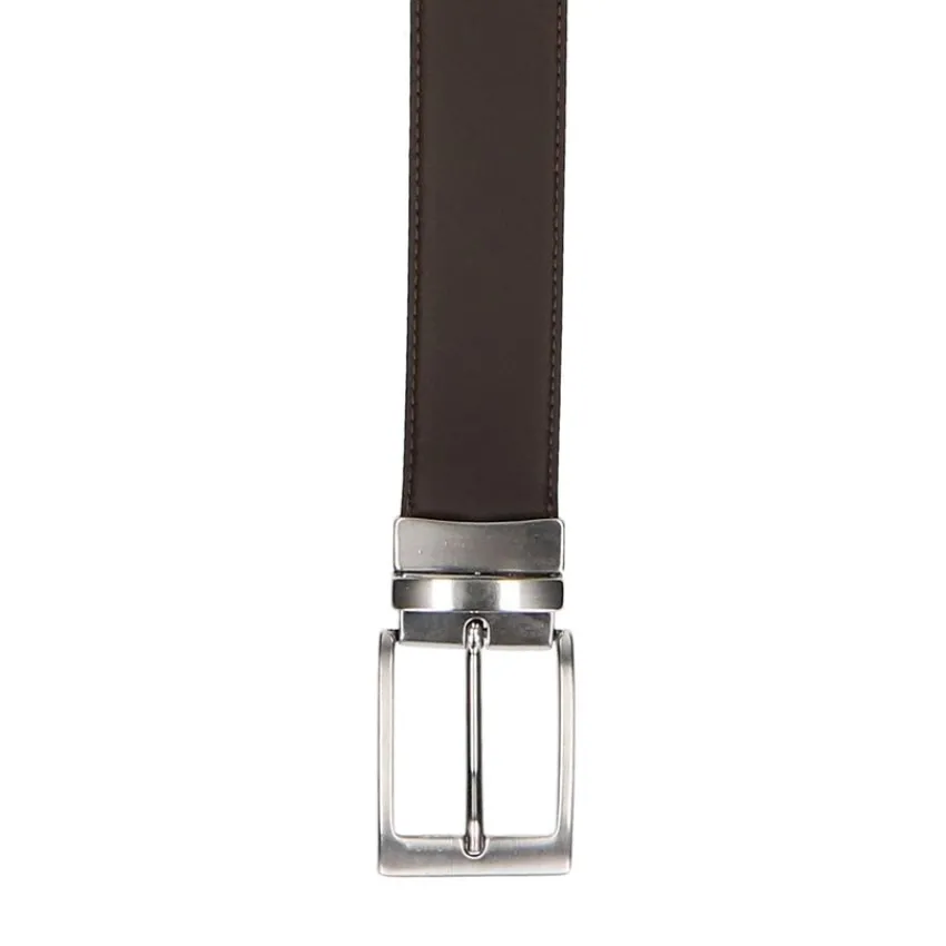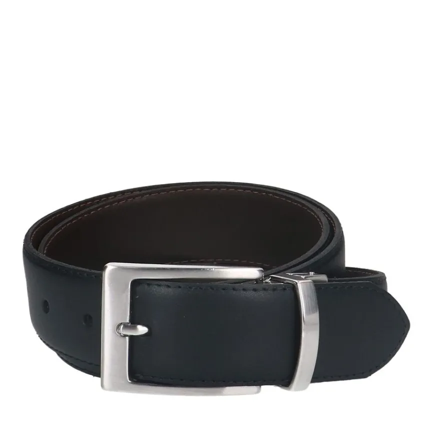 Zwarte en bruine omkeerbare leren riem van het merk Manfield. De gesp van de riem is zilver. Deze riem is 3 cm. breed. Draag de riem met bijpassende leren schoenen en kom stijlvol voor de dag. Een unieke toevoeging aan deze leren riem is de omkeerbare optie. Dankzij de gesp die je kunt omdraaien heb je zowel een bruine als een zwarte leren riem tot je beschikking.