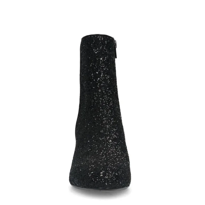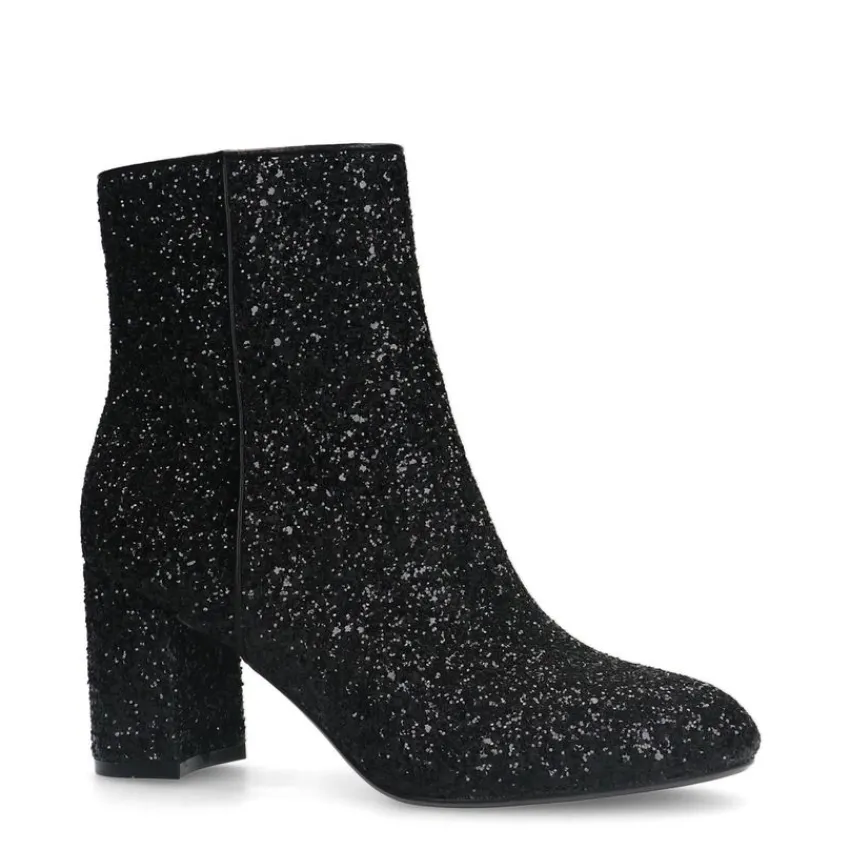 Zwarte glitter enkellaarsjes met hak van Manfield. Deze enkellaarsjes met hak zijn een échte eyecatcher welke ideaal te dragen zijn tijdens een feestje! Deze enkellaarsjes zijn voorzien van zilverkleurige glitters en hebben een blokhak met hoogte van 7 cm. Deze dames laarsjes kunnen gesloten worden door middel van een ritssluiting.