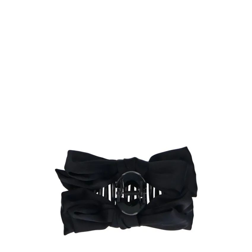 Zwarte haarklem met strik van Manfield. De klem is 11 cm breed en de strik is 14 cm breed.
