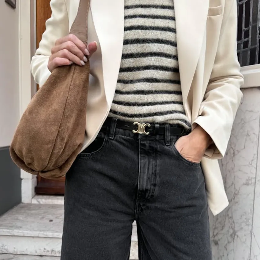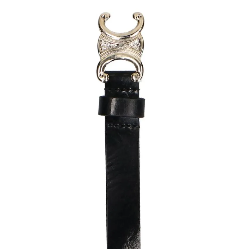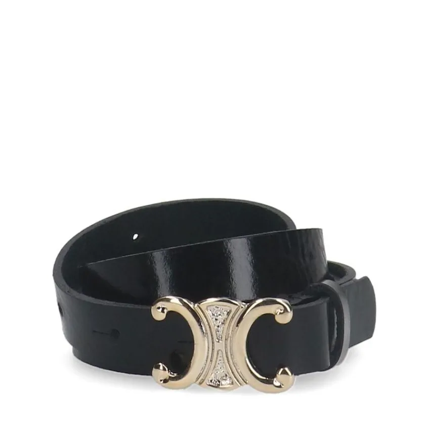 Zwarte leren dames riem met gouden chain van Manfield. De riem heeft een totale lengte van 110 cm en breedte van 2 cm.