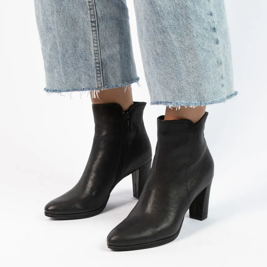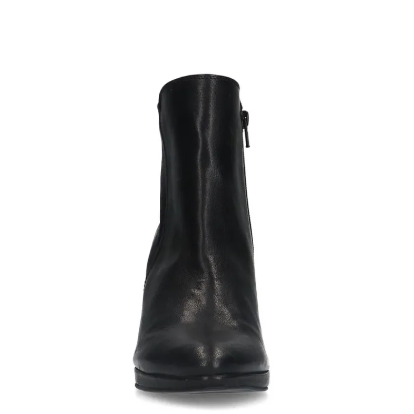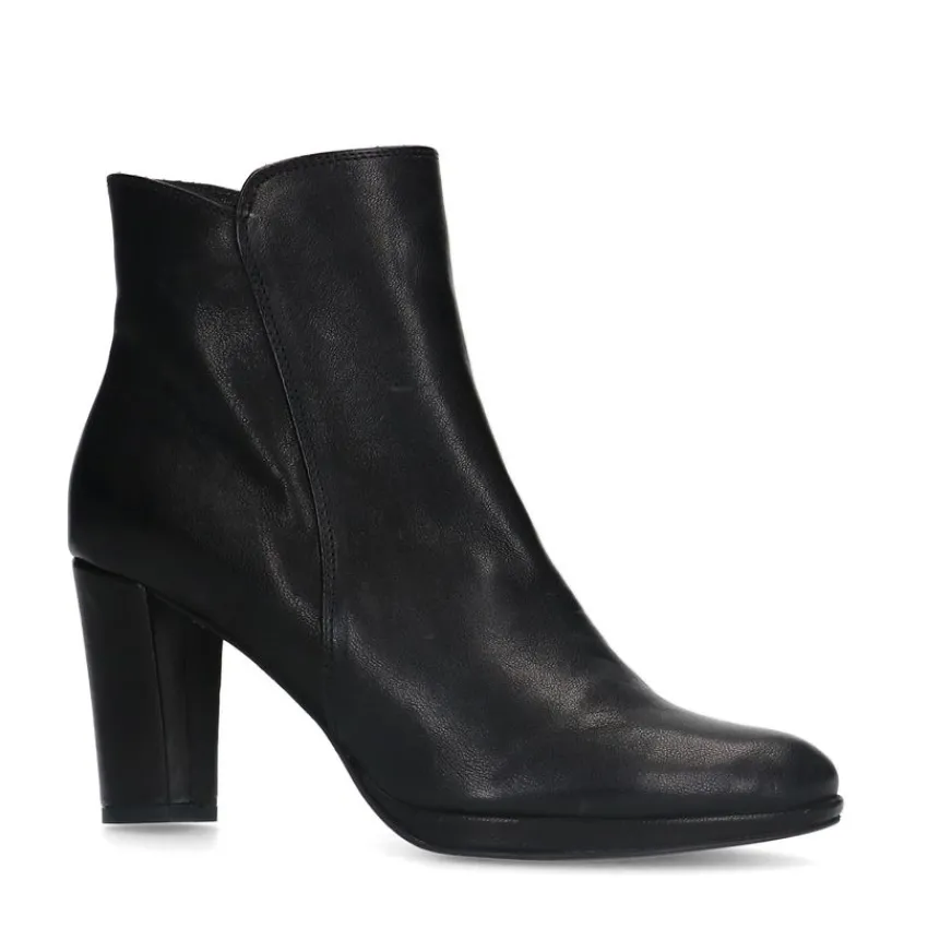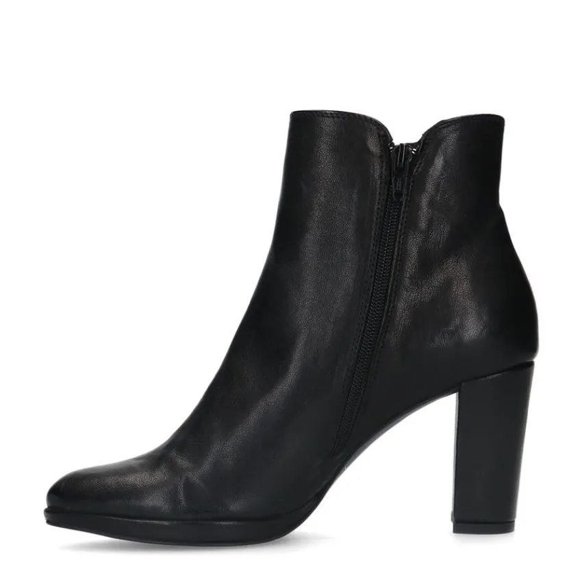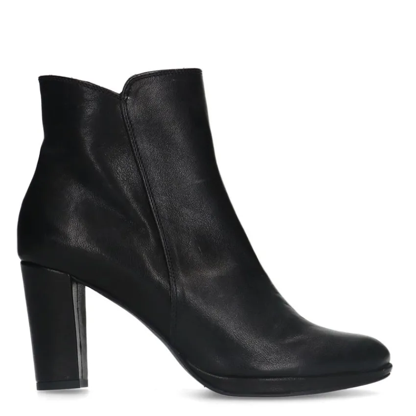 Zwarte leren enkellaarsjes met hak van Manfield. Deze zwarte enkellaarsjes zijn gemaakt van leer en daarom raden we je aan deze enkellaarsjes te verzorgen en beschermen met de Collonil Carbon Pro. Deze enkellaarsjes zijn voorzien van een blokhak met hoogte van 7 cm en kunnen gesloten worden door middel van een rits.