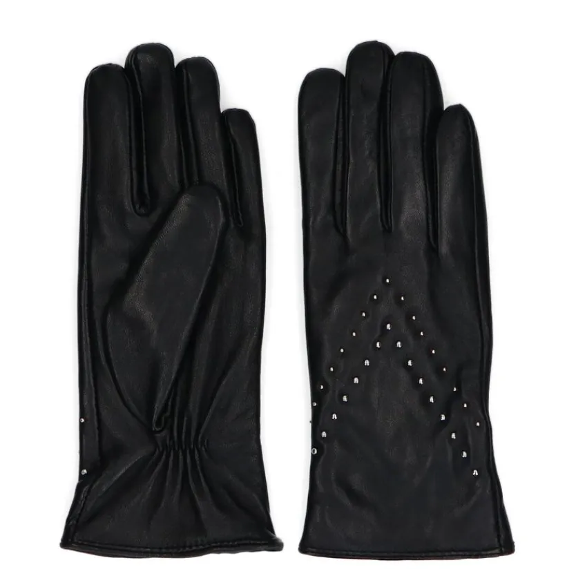 Zwarte leren handschoenen met studs van Manfield. De handschoenen hebben een gevoerde binnen kant.