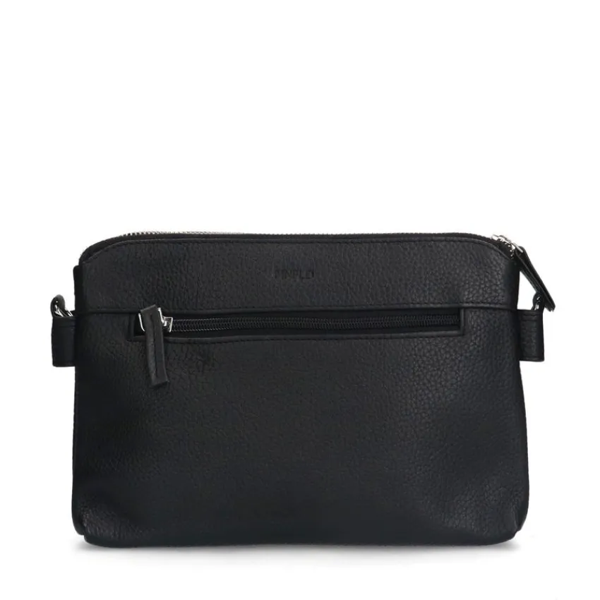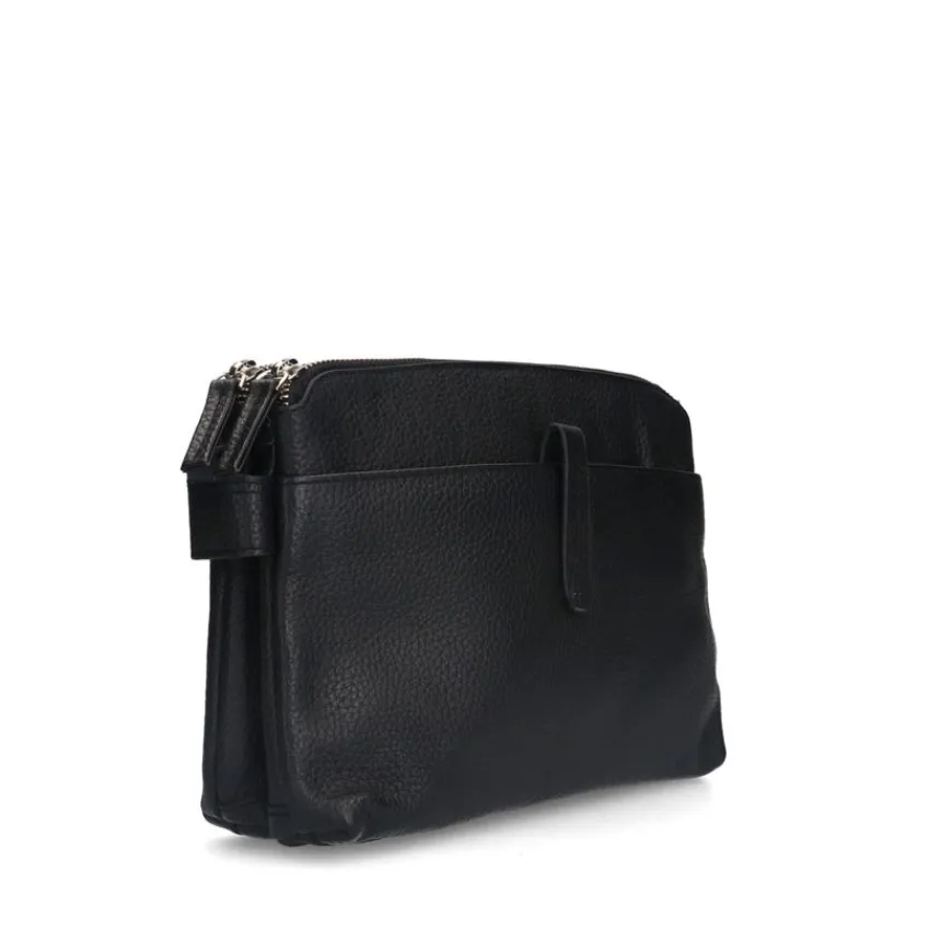 Zwarte leren schoudertas van Manfield met dubbele ritssluiting en verstelbare band van 115 cm. De afmeting van de tas is…
