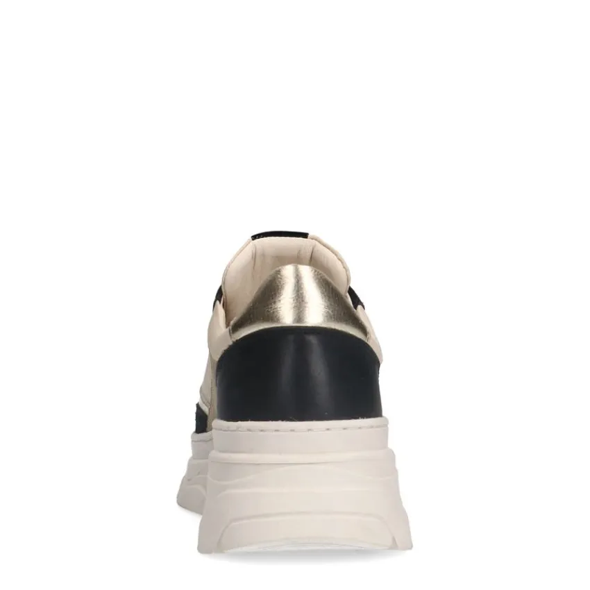 Zwarte leren sneakers met suède details van Manfield met een zool van 4 cm en de binnenzool is uitneembaar. We adviseren als verzorging en bescherming de Collonil Carbon Pro of de suède/nubuck spray in transparant.