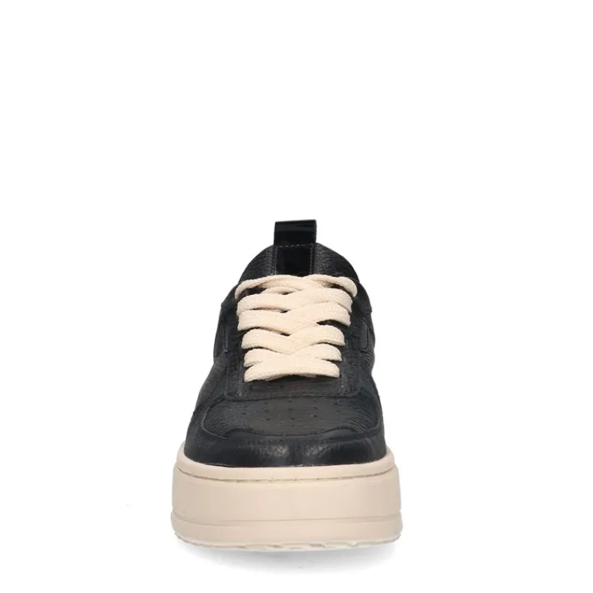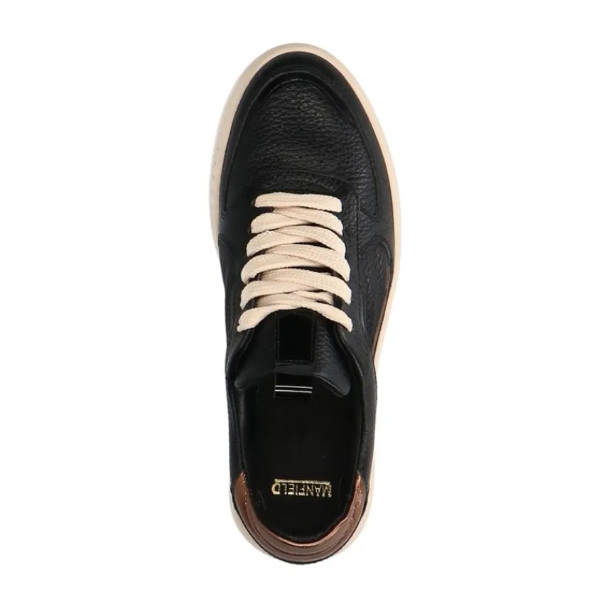 Zwarte leren sneakers van Manfield. Deze sportieve sneakers zijn gemaakt van leer en daarom raden we je aan deze sneakers te verzorgen en beschermen met de Collonil Carbon Pro. Deze sneakers zijn voorzien van een beige zool, wat zorgt voor een casual en sportieve uitstraling. De bronzen metallic uitstraling zorgt voor nét dat beetje extra.