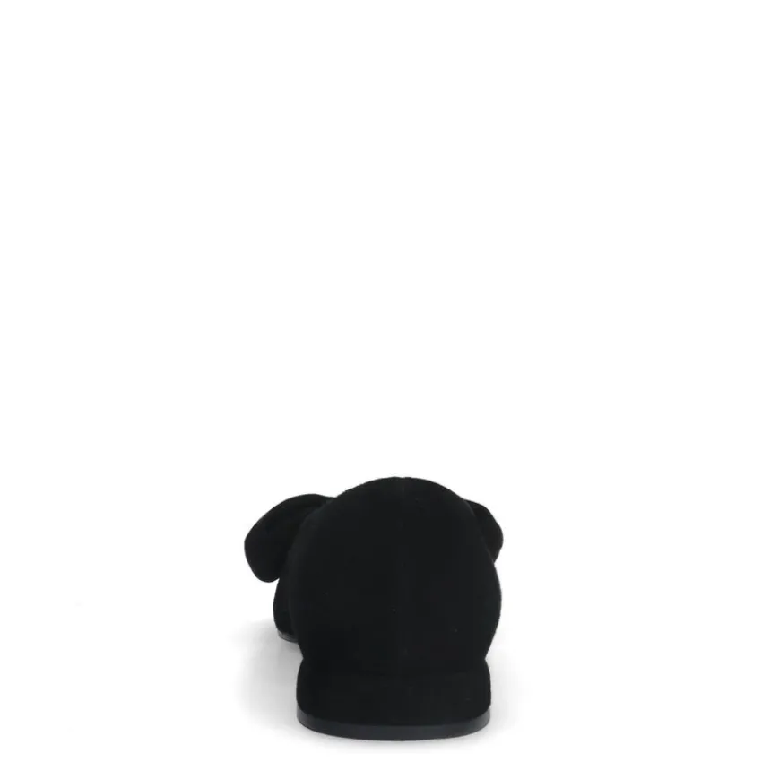 Zwarte suède loafers met strik van Manfield. De loafers hebben een platte hak van 1 cm en een puntige neus. We adviseren als verzorging en bescherming de suède/nubuck spray in transparant.