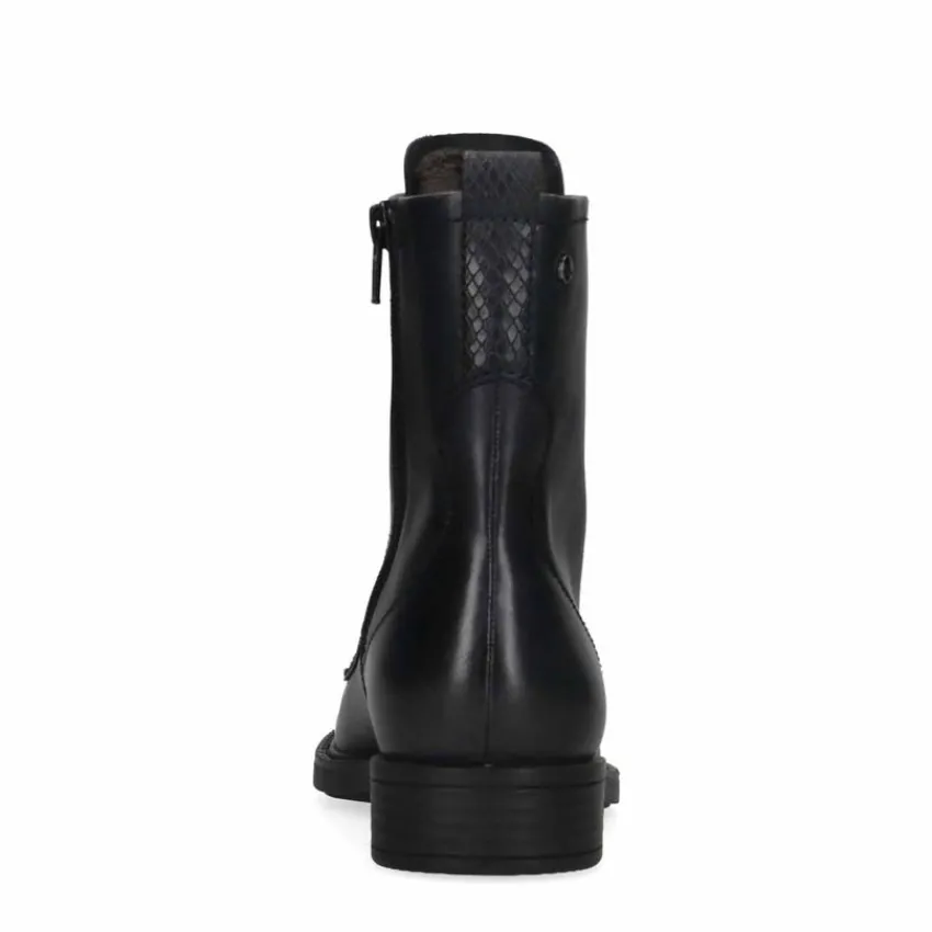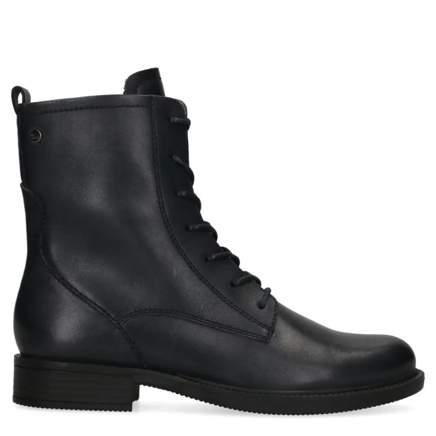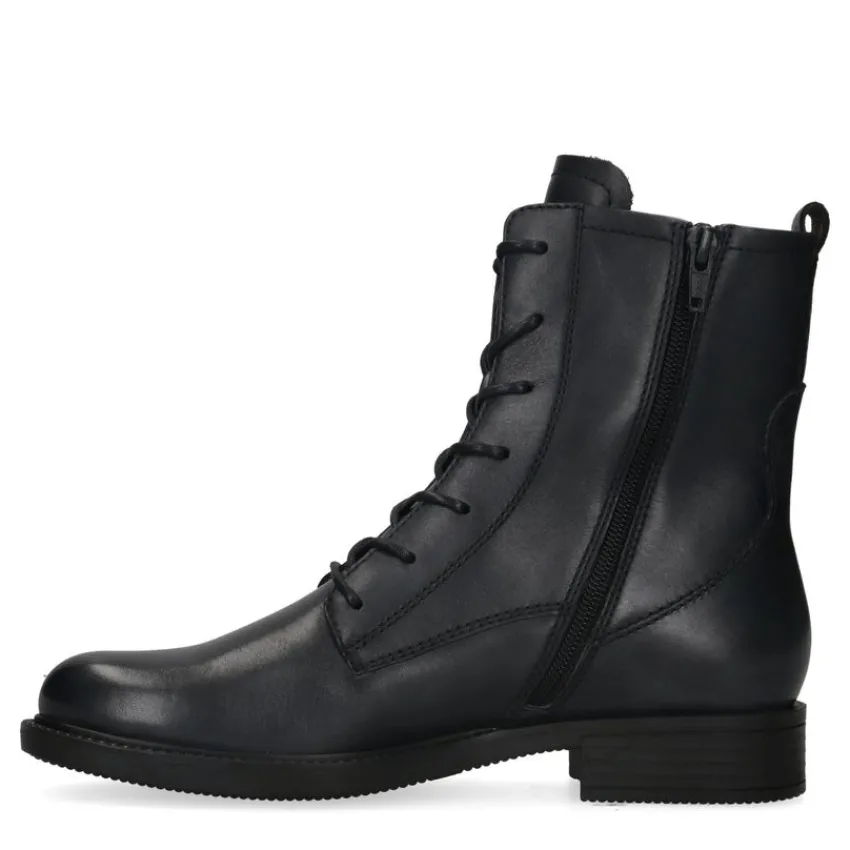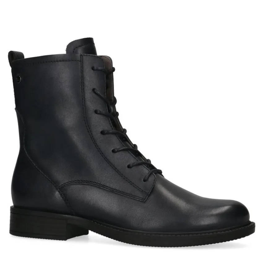 Blauwe veterlaarsjes van No Stress. De buitenkant is gemaakt van leer en de binnenkant van textiel. Je kunt de laarsjes gemakkelijk aantrekken middels de rits en strakker trekken met de veters. In de binnenkant zit imitatiebont wat lekker zacht aanvoelt. Op de bovenkant van de zool zit een extra leuk detail. Combineer ze met een jeans en een oversized blouse. Maak gebruik van de juiste onderhoudsproducten.