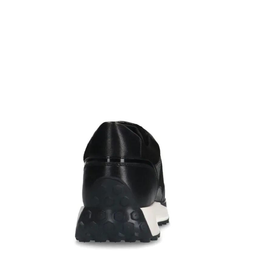 No Stress Zwarte leren sneakers met details^DAMES Sneakers