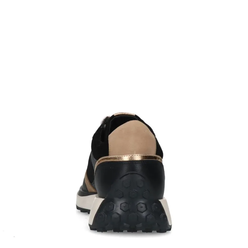 Zwarte leren sneakers van No Stress. Deze sneakers zijn gemaakt van leer en zijn voorzien van metallic én suède details, daarom raden we je aan deze sneakers te verzorgen en beschermen met de Metallic Spray. Deze sneakers zijn voorzien van een witte zool met hoogte van 2 cm. Dankzij de zool die is gemaakt van memory foam, ervaar je met deze No Stress sneakers een optimaal loopcomfort.