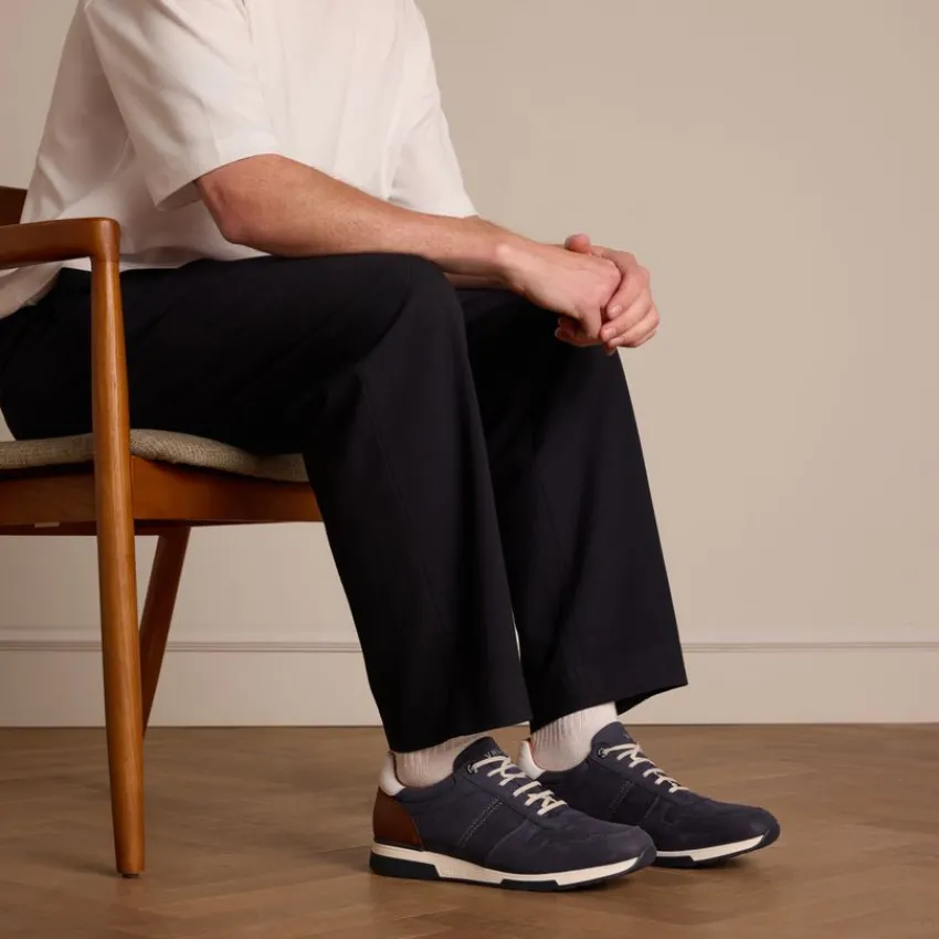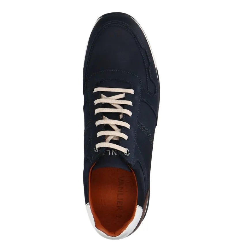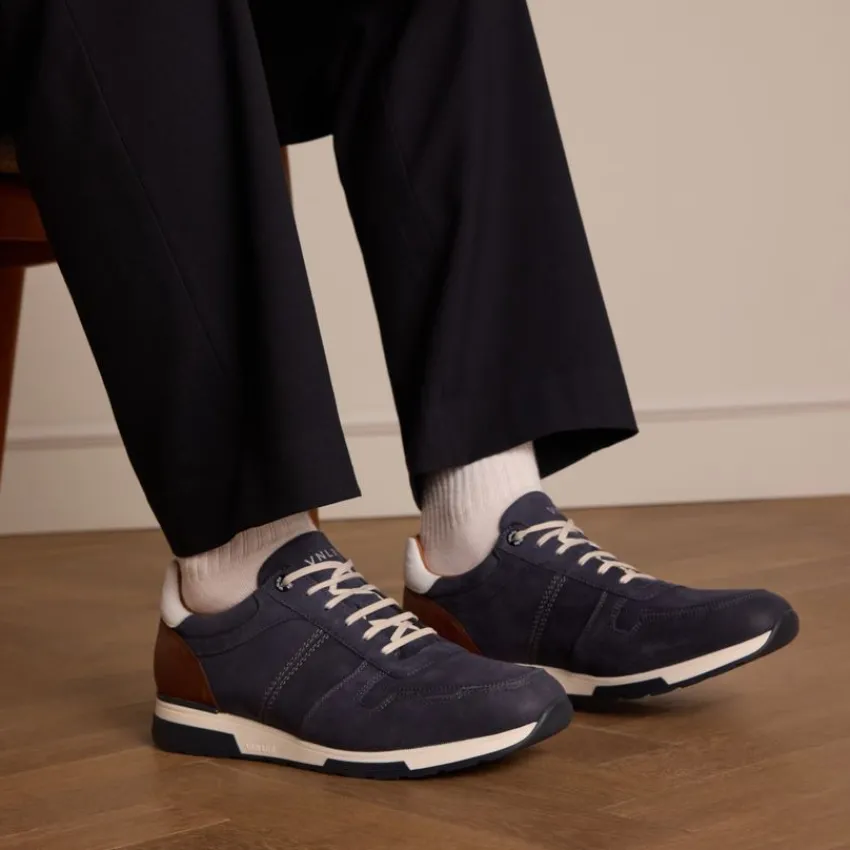 Blauwe nubuck sneakers van Van Lier met witte zool. De we adviseren als verzorging en bescherming de suède/nubuck spray in transparant.