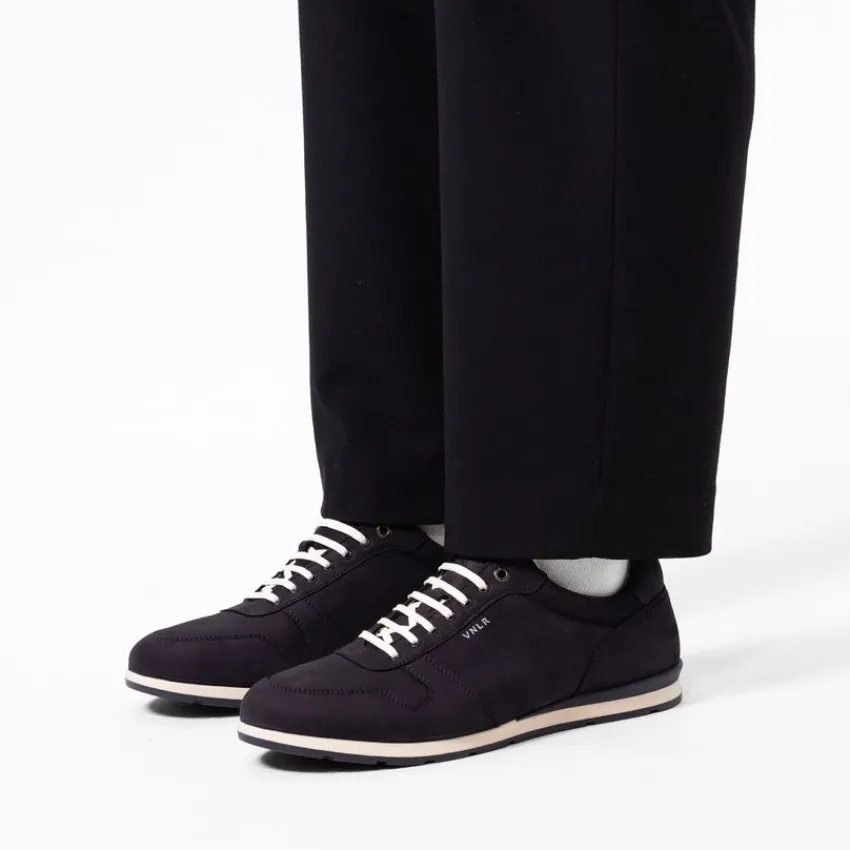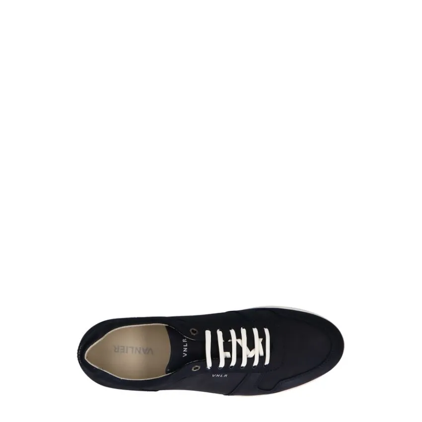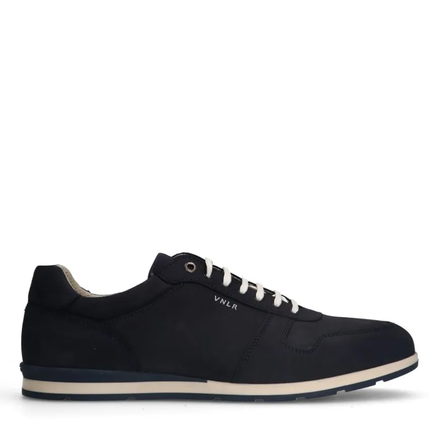 Blauwe nubuck sneakers van Manfield met uitneembare binnenzool en een vetersluiting. We adviseren als verzorging en bescherming de suède/nubuck spray in transparant.