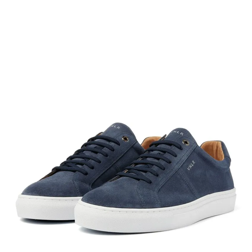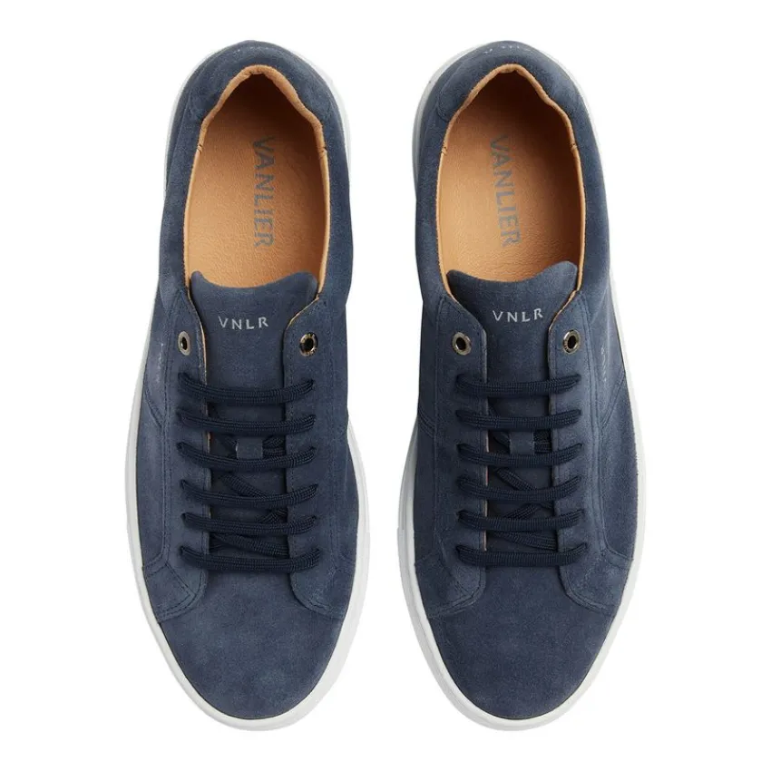 Blauwe suède sneakers van het merk Van Lier met witte zool van 2 cm. We adviseren als verzorging en bescherming de suède/nubuck spray in transparant.