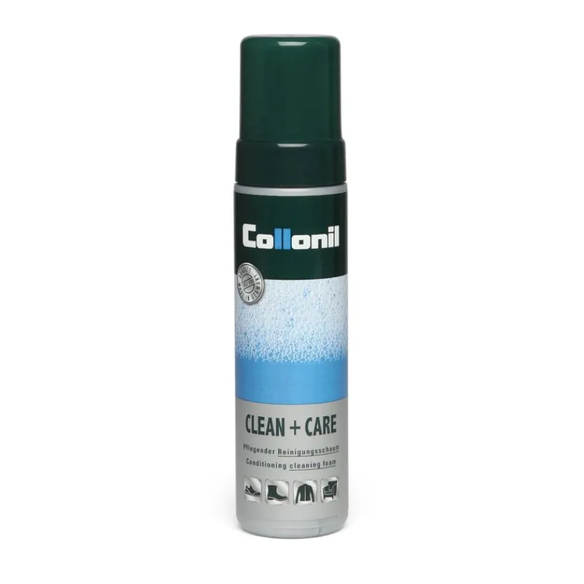 Clean & care schuim reinigt en verzorgd de schoenen en is geschikt voor gladleer, nubuck, suede, textiel en materiaalcombinaties. Gebruiksaanwijzing: Bij leersoorten met een diepe nerf kan het schuim direct op de schoen aangebracht worden, bij gladde leersoorten dient een doek gebruikt te worden. Gladleer na reiniging tot glans opwrijven en suede en/of nubuck wat opruwen. Gelieve de schoen voor het gebruik van deze reiniging te testen op kleurechtheid.
